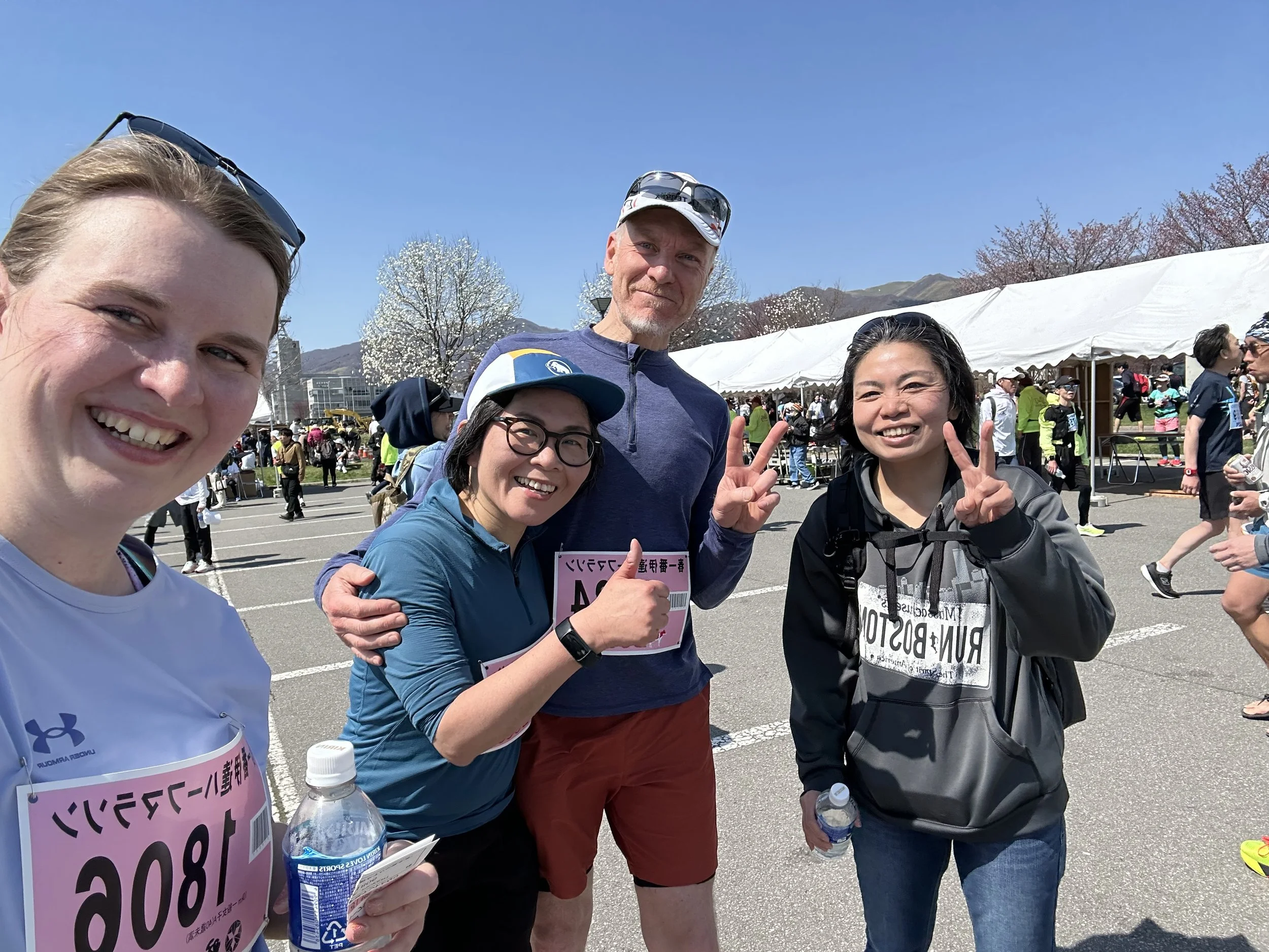ゴール前では橘先生が写真を撮ってくれて、Gaynor先生と奥様も待っていて、みんなでゴールの感動を分かち合いました。