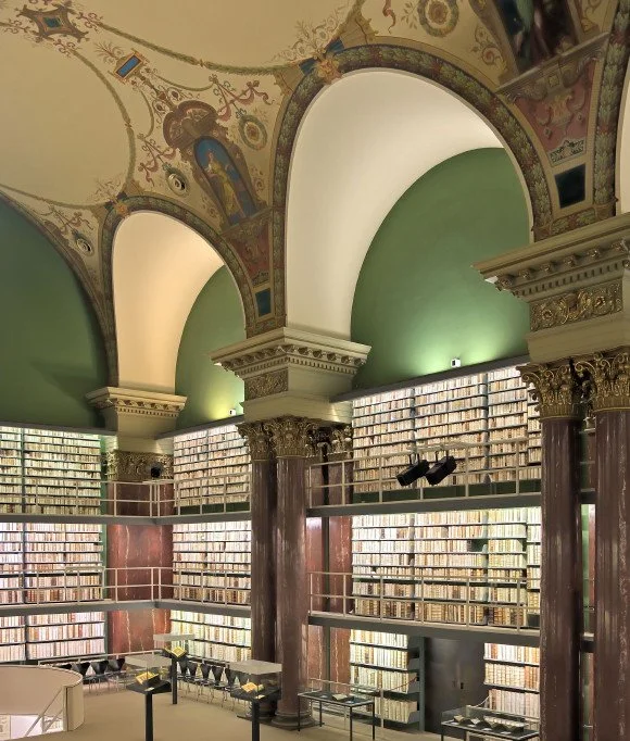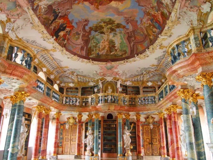 ウィブリンゲン修道院図書館は、ドイツのウルムにある図書館です。 このウィブリンゲン修道院図書館は、ウィブリンゲン修道院の中にある図書館で、図書館と 一緒にウィブリンゲン修道院の大聖堂と一体になっています。 なかでもウィブリンゲン修道院図書館の最大の特徴は、精巧に作られたバロック建築ロコ コ調の様式でまるで芸術品を見ているようです。 それもそのはずこのウィブリンゲン修道院はベネディクト会の僧侶の本拠地でもありまし た。 写真で見るだけでもこれは本当に図書館なのかと思えるほどの豪華絢爛の装飾はウィブリ ンゲン修道院図書館でしか見ることができません。