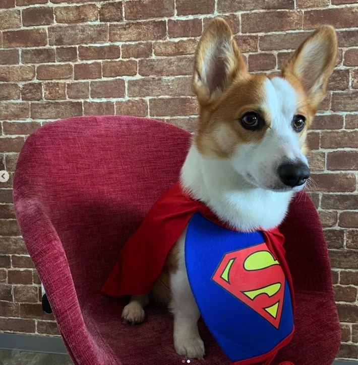 ・スーパーマンのコスプレします!僕は、かっこいいでしょうワン。